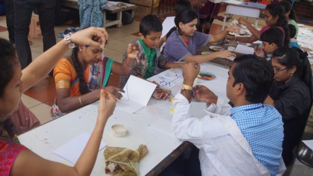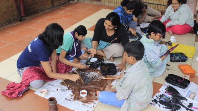 This year we covered a wide array of art forms in five slots of six sessions each. The sessions involved exploring impromptu costume parties to one-minute skits, traditional board games, some introspective story sharing sessions with theatre and storytelling, creation of myriad paintings and shadows to create puppets, pottery, baking, folk dances from across the globe and creation of foot tapping rhythms during sessions on music and drumming. Special sessions on rubik’s cube, masks, mirrors, film-screenings were also conducted by experts.