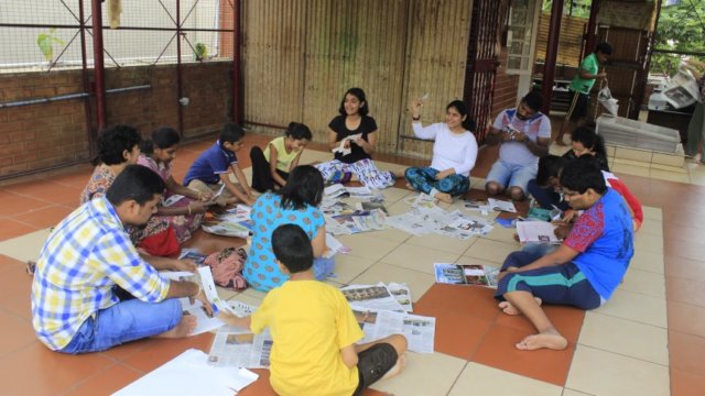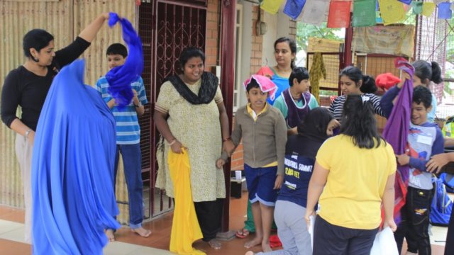 Snehadhara believes that healing and learning is as much a process of the community as it is a personal journey. Each child requires meaningful and holistic learning spaces which are co-created by all those who engage with the child. Pipilika, which means ‘ants’ in Sanskrit, is our outreach programme that anchors our belief in the use of the arts towards practicing and building inclusion. Arts based interventions are taken to schools and learning centres with the objective of working with very diverse groups of children. Pipilika focuses on capacity building, equipping all those working with children and adults with special needs to look at inclusive and integrated methods of learning and teaching. Pipilika has explored a multitude of art forms over the years: storytelling, drumming, structured play, weaving, quilting, dyeing, origami and craft, cooking, pottery, body jamming and theatre. This mix of various art forms has not only brought a lot of fun and frolic, it has also gently helped us to look inwards.