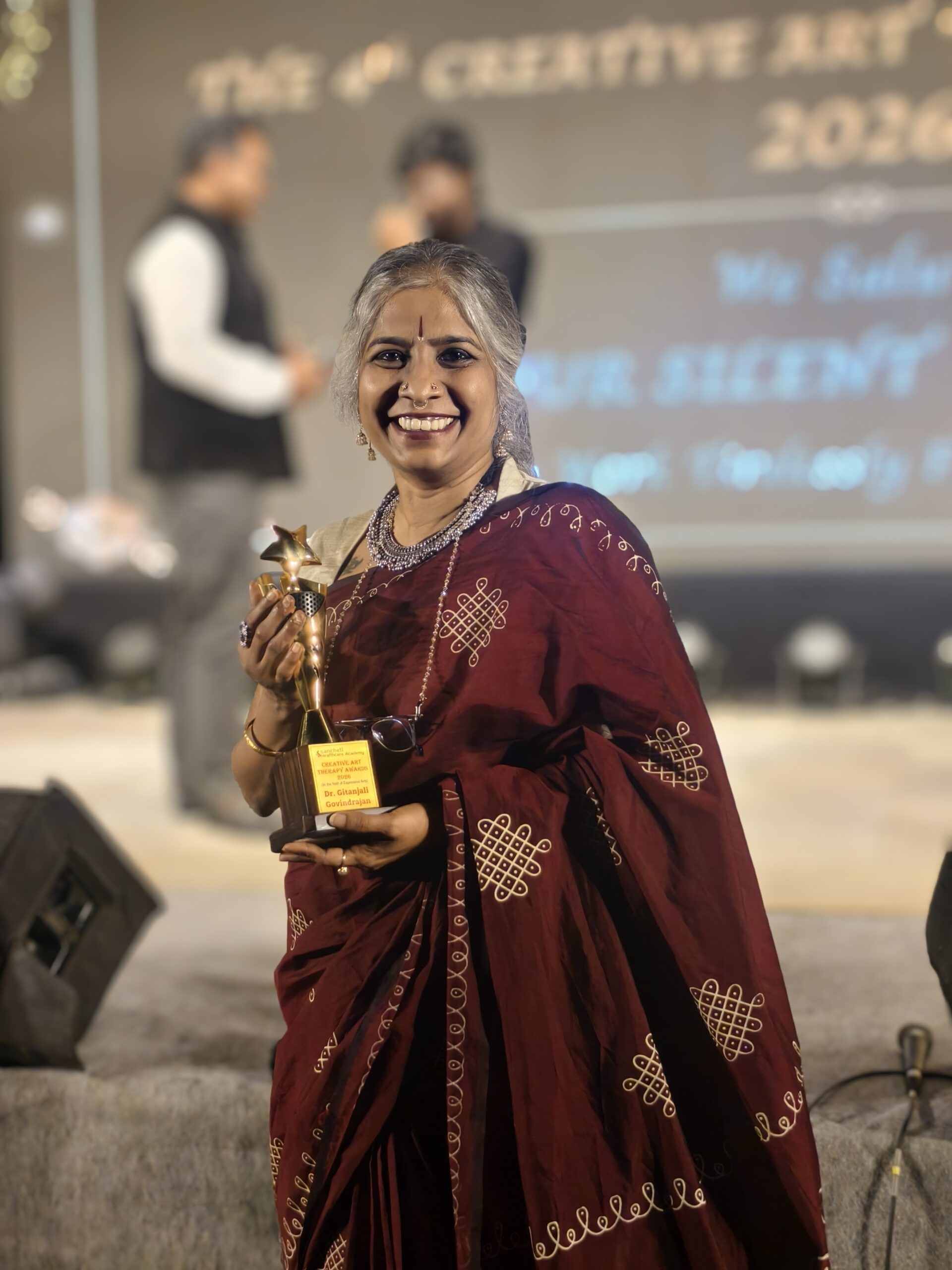 We are delighted to share that Dr. Gitanjali has won the 4th Creative Art Therapy Awards 2025–2026, in recognition of her sustained contributions to creative and expressive arts in healthcare and community-based work. This honour acknowledges her commitment to arts-based practices that centre inclusion, care, and lived experience.