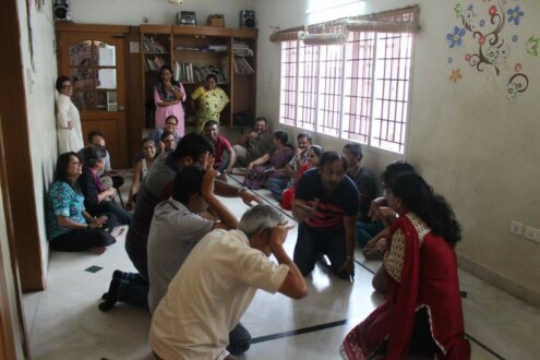 This is a day programme in our community living space at Nelamangala where parents will be invited to spend a day full of exciting activities. Through the magic of theatre and the power of melody, here’s a chance for parents to find their feet, be boisterous and carefree, meet fellow parents and experience meaningful collaborations. They will get a taste of community living and access refreshing and rejuvenating experiences in idyllic environs.
